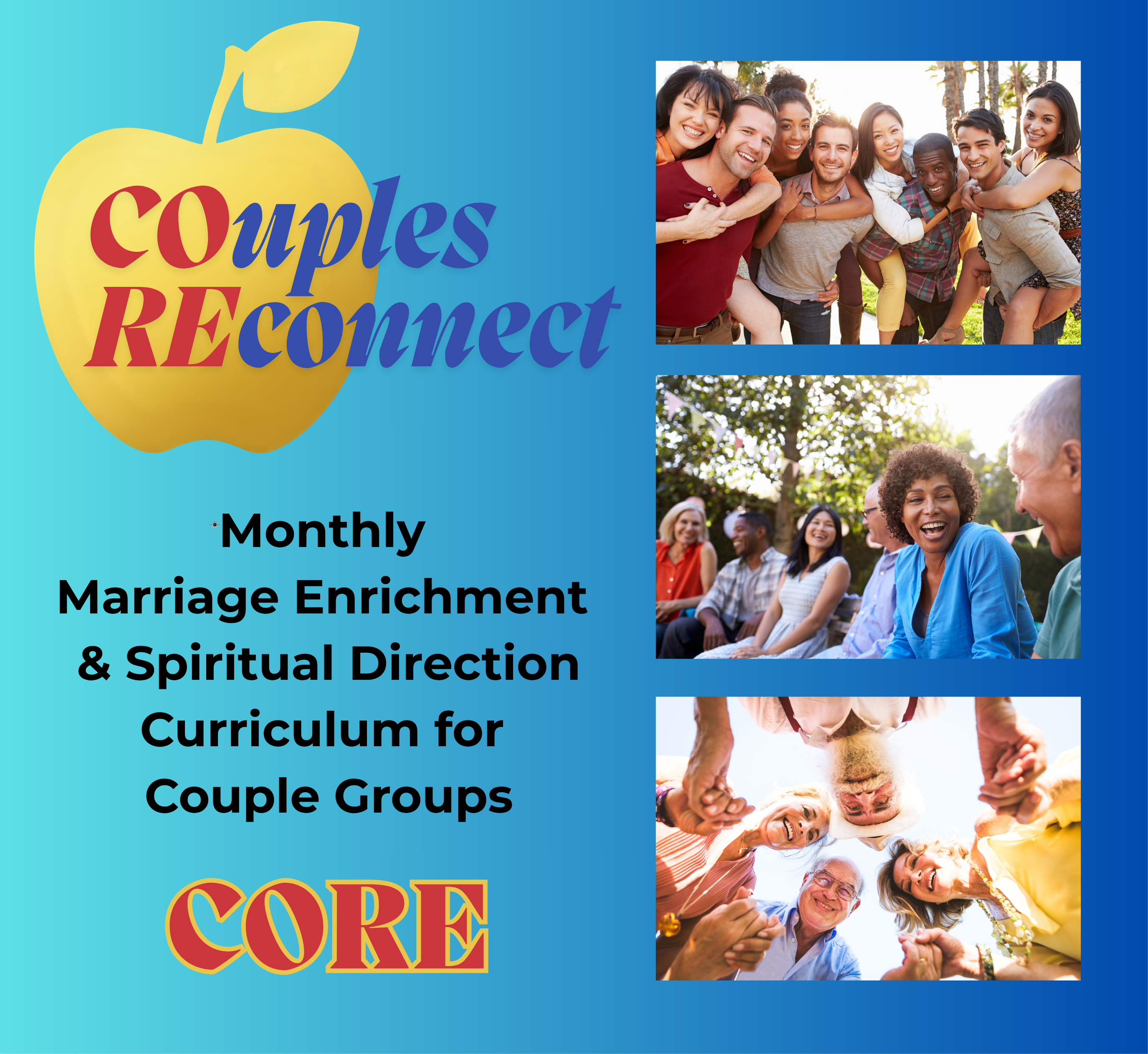 CORE is more than a program—it's a community. Open to all married couples seeking friendship, support, and ongoing marriage enrichment. If you've participated in Rediscovery Retrouvaille, Six Weeks to Us, or Marriage Encounter, you already know the value of couple community. New here? Come discover it!