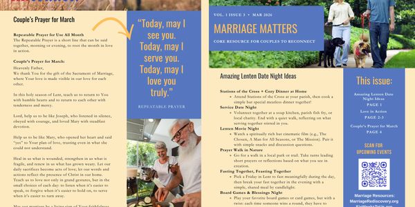 Marriage Matters is a monthly digital and/or print newsletter provided to you to share with married couples throughout your diocese or parish.